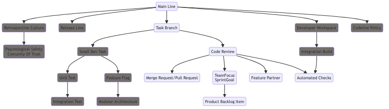 After a developer has completed a Small Development Task in a Task Branch they’d like to make sure that they get some feedback on their code before they merge to the Main Line. Since the Small Development Task is small, the change set will be small and quick to review.