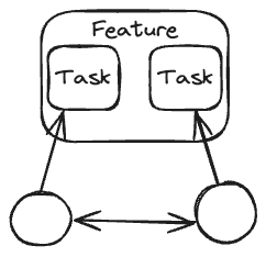 Individual developers working on different tasks related to the same story using the same tech stack, for example, two backend developers working on tasks related to a story.