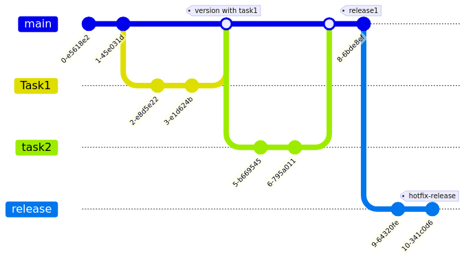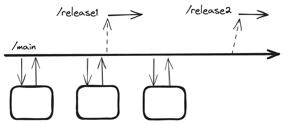 A Release Line starts from the Mainline. Its purpose is to identify a released version of the software. Usually, a Release Lineshould have no commits added to it, and the branch ends when the next release line is created. The Release Line could be deleted after the next release is deployed, but we often keep it around for review, audit or compliance reasons. Limit the number of deployed release lines, ideally, to 1.
