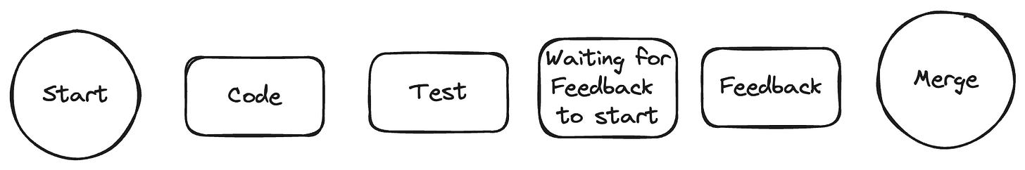 Time between work being complete and merging