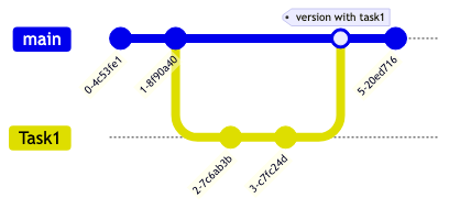 A Task Branch starts from the Mainline. Its purpose is to provide a backing store for work—typically by one developer or a pair—in a workspace related to a Small Development Task. This branch ends when the task is merged.